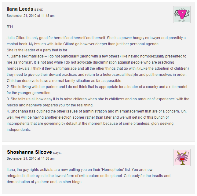 Ilana Leeds posted a hateful comment on Galus Australis: